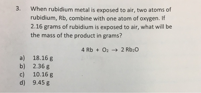 Solved 3 When Rubidium Metal Is Exposed To Air Two Atoms Chegg Com